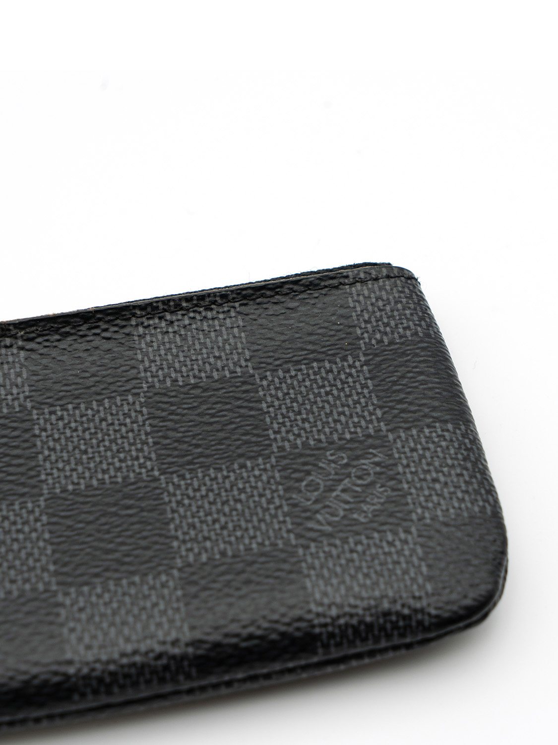 La pochette con catenella è un accessorio pratico e originale, ideale per riporre contanti, carte di credito, chiavi e altri piccoli oggetti. L’iconico modello in tela Damier Graphite, completato dalla zip con iniziali LV incise, può essere indossato come bags charm, oppure agganciato all’anello a D presente all’interno di gran parte delle borse firmate Louis Vuitton. Presenta leggeri segni di utilizzo. Nuovo costa 270 Euro.